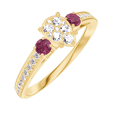 « L'ATELIER » Nº210046Anello Oro giallo 9 carati - Cluster di diamanti naturali Goccia equivalente 0.5 - Pietre laterali Rubino - Incastonatura Diamante