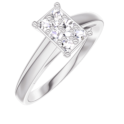 « L'ATELIER » Nº210404Anello Oro bianco 9 carati - Cluster di diamanti naturali Rettangolo equivalente 0.7