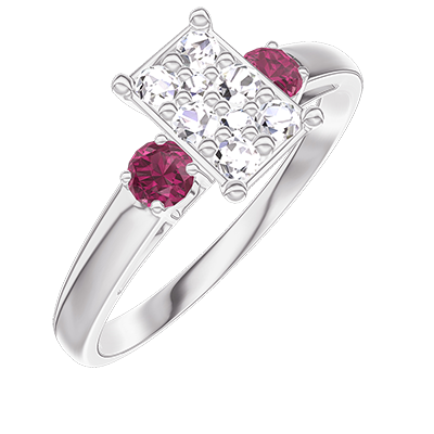 « L'ATELIER » Nº210444Anello Oro bianco 9 carati - Cluster di diamanti naturali Rettangolo equivalente 0.7 - Pietre laterali Rubino