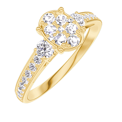 « L'ATELIER » N. 210525Anello Oro giallo 18 carati - Cluster di diamanti naturali Ovale equivalente 0.7 - Pietre laterali Diamante - Incastonatura Diamante