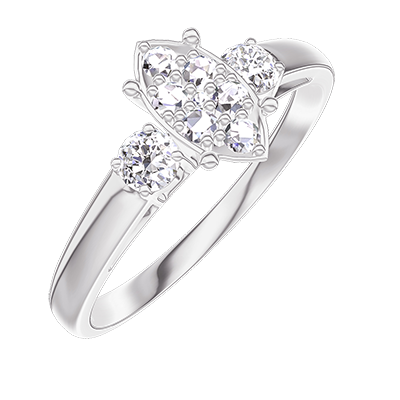 « L'ATELIER » Nº210724Anello Oro bianco 9 carati - Cluster di diamanti naturali Marchesa equivalente 0.7 - Pietre laterali Diamante