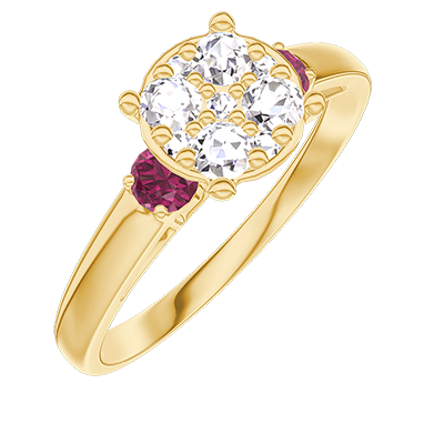« L'ATELIER » Nº210841Anello Oro giallo 18 carati - Cluster di diamanti naturali Rotonda equivalente 1 - Pietre laterali Rubino 4.9