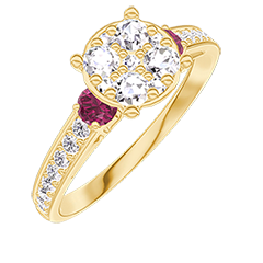 « L'ATELIER » N. 210846Anello Oro giallo 9 carati - Cluster di diamanti naturali Rotonda equivalente 1 - Pietre laterali Rubino - Incastonatura Diamante 4.7