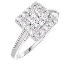 Anello Oro bianco 9 carati - Cluster di diamanti naturali Principessa equivalente 0.5 - Halo Diamante