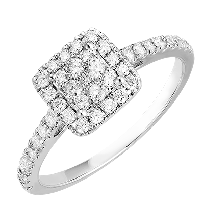 « L'ATELIER » N. 211455Anello Oro bianco 18 carati - Cluster di diamanti naturali Principessa equivalente 0.5 - Halo Diamante - Incastonatura Diamante 4.6
