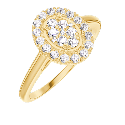 « L'ATELIER » Nº211546Anello Oro giallo 9 carati - Cluster di diamanti naturali Ovale equivalente 0.5 - Halo Diamante 4.8