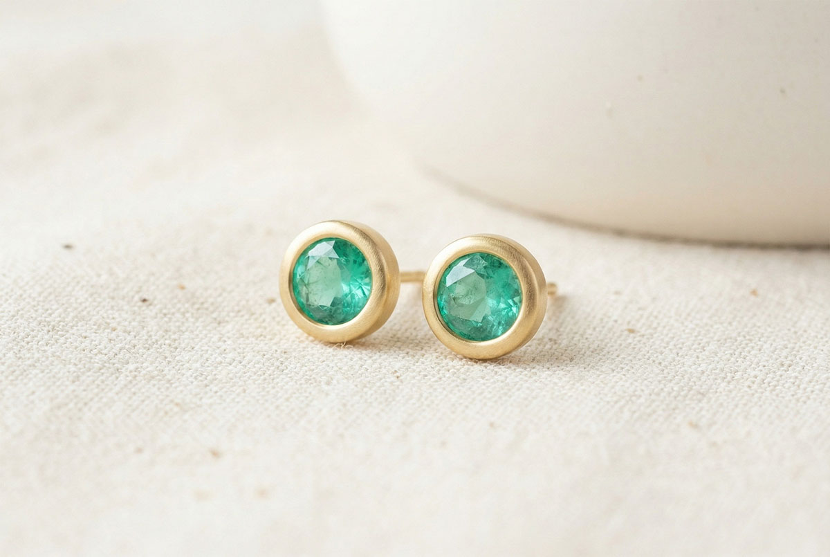 « L'ATELIER » N. 403913Orecchini Oro giallo 9 carati - Smeraldo Rotonda 0.3 Carati (2 X) 4.6