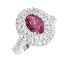 « L'ATELIER » N. 404399Anello Oro bianco 9 carati - Rubino Ovale 0.5 Carati - Halo Diamante - Incastonatura Diamante