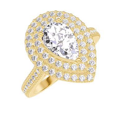 « L'ATELIER » N. 407111Anello Oro giallo 9 carati - Diamante di laboratorio Goccia 0.5 Carati - Halo Diamante di laboratorio - Incastonatura Diamante di laboratorio