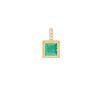 « L'ATELIER » N. 408732Ciondolo Oro giallo 18 carati - Smeraldo Principessa 0.3 Carati - Incastonatura Diamante - Nessuna catenella