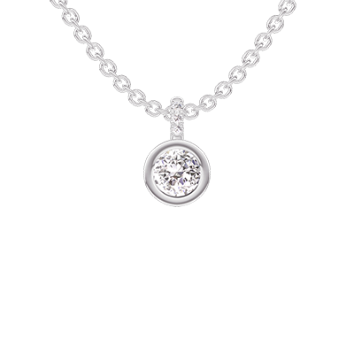 « L'ATELIER » N. 409626Ciondolo Oro bianco 18 carati - Diamante di laboratorio Rotonda 0.3 Carati - Incastonatura Diamante di laboratorio - Catena Rolò 4.8