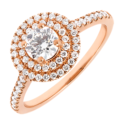 « L'ATELIER » N. 415834Anello Oro rosa 18 carati - Diamante Rotonda 0.5 Carati - Halo Diamante - Incastonatura Diamante