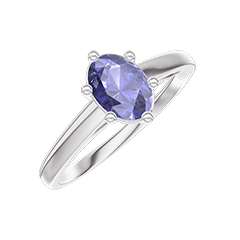 Anello Oro bianco 9 carati - Zaffiro blu Ovale 0.5 Carati