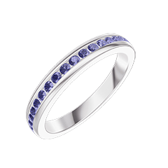 Fede nuziale Oro bianco 18 carati - Giro completo Binario Zaffiro blu 0.56 Carati