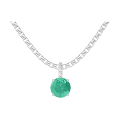 « L'ATELIER » N. 207048Ciondolo Oro bianco 9 carati - Smeraldo Rotonda 0.3 Carati - Incastonatura Diamante - Catena Veneziana 4.6 (10)