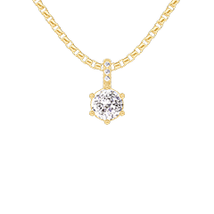 « L'ATELIER » N. 405290Ciondolo Oro giallo 9 carati - Diamante di laboratorio Rotonda 0.3 Carati - Incastonatura Diamante di laboratorio - Catena Veneziana 4.6 (9)