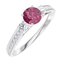 « L'ATELIER » N. 160627Anello Oro bianco 18 carati - Rubino Rotonda 0.3 Carati - Pietre laterali Diamante - Incastonatura Diamante 4.5 (37)
