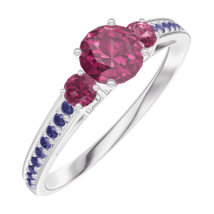 « L'ATELIER » N. 160655Anello Oro bianco 18 carati - Rubino Rotonda 0.3 Carati - Pietre laterali Rubino - Incastonatura Zaffiro blu 4.5 (37)