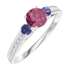 « L'ATELIER » Nº160668Anello Oro bianco 9 carati - Rubino Rotonda 0.3 Carati - Pietre laterali Zaffiro blu - Incastonatura Diamante 4.8 (36)