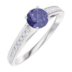 « L'ATELIER » N. 161208Anello Oro bianco 9 carati - Zaffiro blu Rotonda 0.3 Carati - Incastonatura Diamante 4.5 (37)
