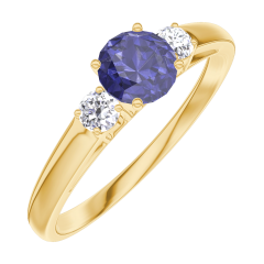 « L'ATELIER » N. 161222Anello Oro giallo 9 carati - Zaffiro blu Rotonda 0.3 Carati - Pietre laterali Diamante 4.5 (37)