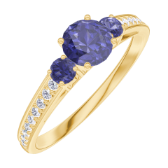 « L'ATELIER » N. 161266Anello Oro giallo 9 carati - Zaffiro blu Rotonda 0.3 Carati - Pietre laterali Zaffiro blu - Incastonatura Diamante 4.5 (42)