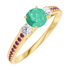 « L'ATELIER » N. 161829Anello Oro giallo 18 carati - Smeraldo Rotonda 0.3 Carati - Pietre laterali Diamante - Incastonatura Rubino 4.5 (37)