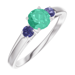 « L'ATELIER » N. 161864Anello Oro bianco 9 carati - Smeraldo Rotonda 0.3 Carati - Pietre laterali Zaffiro blu 4.5 (42)