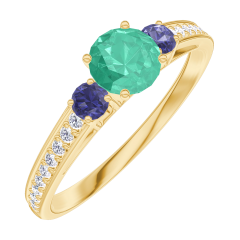« L'ATELIER » N. 161866Anello Oro giallo 9 carati - Smeraldo Rotonda 0.3 Carati - Pietre laterali Zaffiro blu - Incastonatura Diamante 4.5 (42)