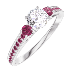 « L'ATELIER » N. 180052Anello Oro bianco 9 carati - Diamante di laboratorio Rotonda 0.3 Carati - Pietre laterali Rubino - Incastonatura Rubino 4.5 (42)