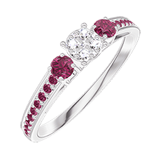 « L'ATELIER » N. 209052Anello Oro bianco 9 carati - Cluster di diamanti naturali Rotonda equivalente 0.3 - Pietre laterali Rubino - Incastonatura Rubino 4.5 (42)
