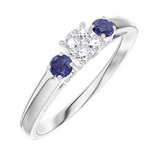 « L'ATELIER » N. 209063Anello Oro bianco 18 carati - Cluster di diamanti naturali Rotonda equivalente 0.3 - Pietre laterali Zaffiro blu 4.8 (37)