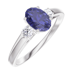 « L'ATELIER » N. 1002453Anello Oro bianco 18 carati - Zaffiro sintetico Ovale 0.5 Carati - Pietre laterali Diamante di laboratorio 5 (4)