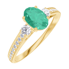 « L'ATELIER » N. 1002936Anello Oro giallo 9 carati - Smeraldo sintetico Ovale 0.5 Carati - Pietre laterali Diamante di laboratorio - Incastonatura Diamante di laboratorio 5 (4)