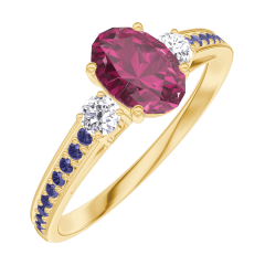 « L'ATELIER » N. 163333Anello Oro giallo 18 carati - Rubino Ovale 0.5 Carati - Pietre laterali Diamante - Incastonatura Zaffiro blu 5 (4)