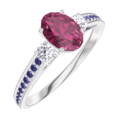 « L'ATELIER » N. 163336Anello Oro bianco 9 carati - Rubino Ovale 0.5 Carati - Pietre laterali Diamante - Incastonatura Zaffiro blu 5 (4)