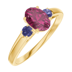 « L'ATELIER » N. 163362Anello Oro giallo 9 carati - Rubino Ovale 0.5 Carati - Pietre laterali Zaffiro blu 5 (4)