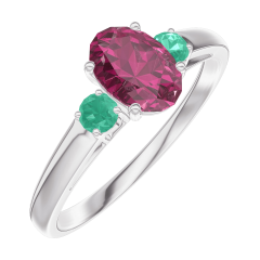 « L'ATELIER » N. 163384Anello Oro bianco 9 carati - Rubino Ovale 0.5 Carati - Pietre laterali Smeraldo 5 (4)