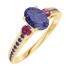 « L'ATELIER » N. 163954Anello Oro giallo 9 carati - Zaffiro blu Ovale 0.5 Carati - Pietre laterali Rubino - Incastonatura Zaffiro blu 5 (4)
