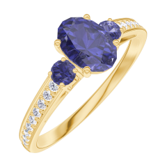 « L'ATELIER » N. 163965Anello Oro giallo 18 carati - Zaffiro blu Ovale 0.5 Carati - Pietre laterali Zaffiro blu - Incastonatura Diamante 5 (4)