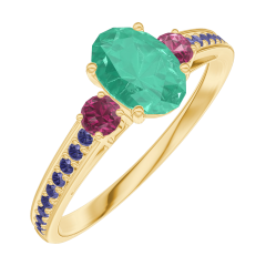 « L'ATELIER » N. 164554Anello Oro giallo 9 carati - Smeraldo Ovale 0.5 Carati - Pietre laterali Rubino - Incastonatura Zaffiro blu 5 (4)