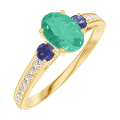 « L'ATELIER » N. 164565Anello Oro giallo 18 carati - Smeraldo Ovale 0.5 Carati - Pietre laterali Zaffiro blu - Incastonatura Diamante 5 (4)