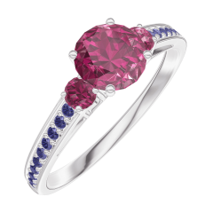 « L'ATELIER » N. 163055Anello Oro bianco 18 carati - Rubino Rotonda 0.5 Carati - Pietre laterali Rubino - Incastonatura Zaffiro blu 4.5 (16)
