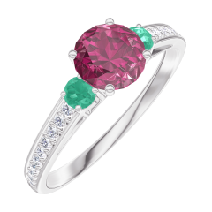 « L'ATELIER » N. 163087Anello Oro bianco 18 carati - Rubino Rotonda 0.5 Carati - Pietre laterali Smeraldo - Incastonatura Diamante 4.5 (21)