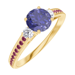 « L'ATELIER » N. 163630Anello Oro giallo 9 carati - Zaffiro blu Rotonda 0.5 Carati - Pietre laterali Diamante - Incastonatura Rubino 4.5 (21)