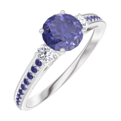 « L'ATELIER » N. 163635Anello Oro bianco 18 carati - Zaffiro blu Rotonda 0.5 Carati - Pietre laterali Diamante - Incastonatura Zaffiro blu 4.5 (21)