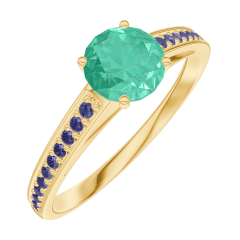 « L'ATELIER » N. 164213Anello Oro giallo 18 carati - Smeraldo Rotonda 0.5 Carati - Incastonatura Zaffiro blu 4.5 (21)