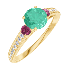 « L'ATELIER » N. 164246Anello Oro giallo 9 carati - Smeraldo Rotonda 0.5 Carati - Pietre laterali Rubino - Incastonatura Diamante 4.5 (16)