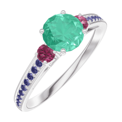 « L'ATELIER » N. 164255Anello Oro bianco 18 carati - Smeraldo Rotonda 0.5 Carati - Pietre laterali Rubino - Incastonatura Zaffiro blu 4.5 (21)