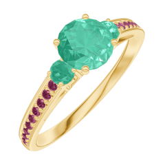 « L'ATELIER » N. 164290Anello Oro giallo 9 carati - Smeraldo Rotonda 0.5 Carati - Pietre laterali Smeraldo - Incastonatura Rubino 4.5 (16)